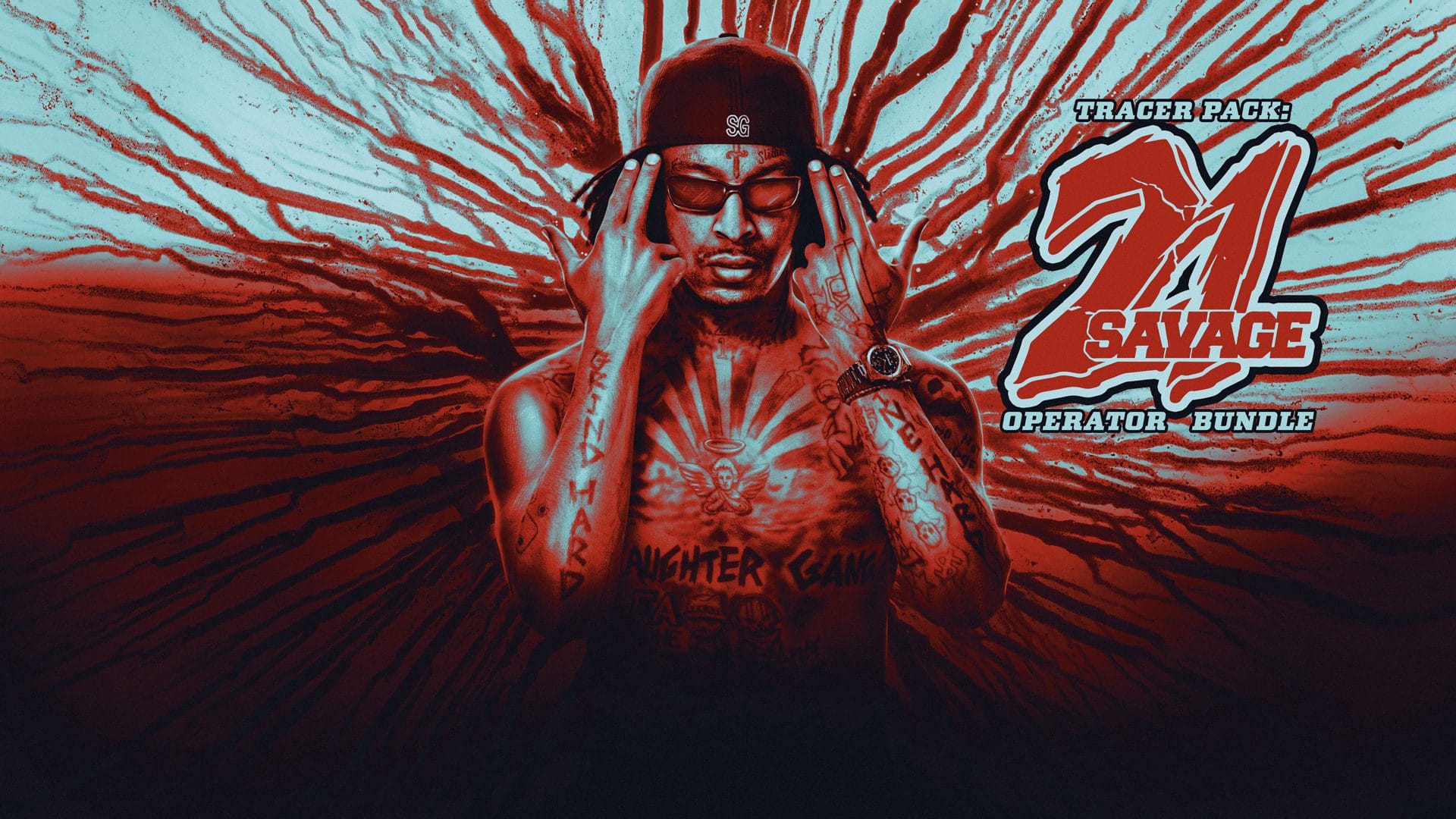 Além de seu Operador e Movimento Finalizador – chamado “Stabbed. . . a Lot” — o Tracer Pack: 21 Savage Bundle inclui notavelmente dois projetos de armas com nomes de duas músicas apresentadas em setlists de shows esgotados ao longo de sua carreira: o rifle de assalto “Savage Mode” e o SMG “Red Opps”.