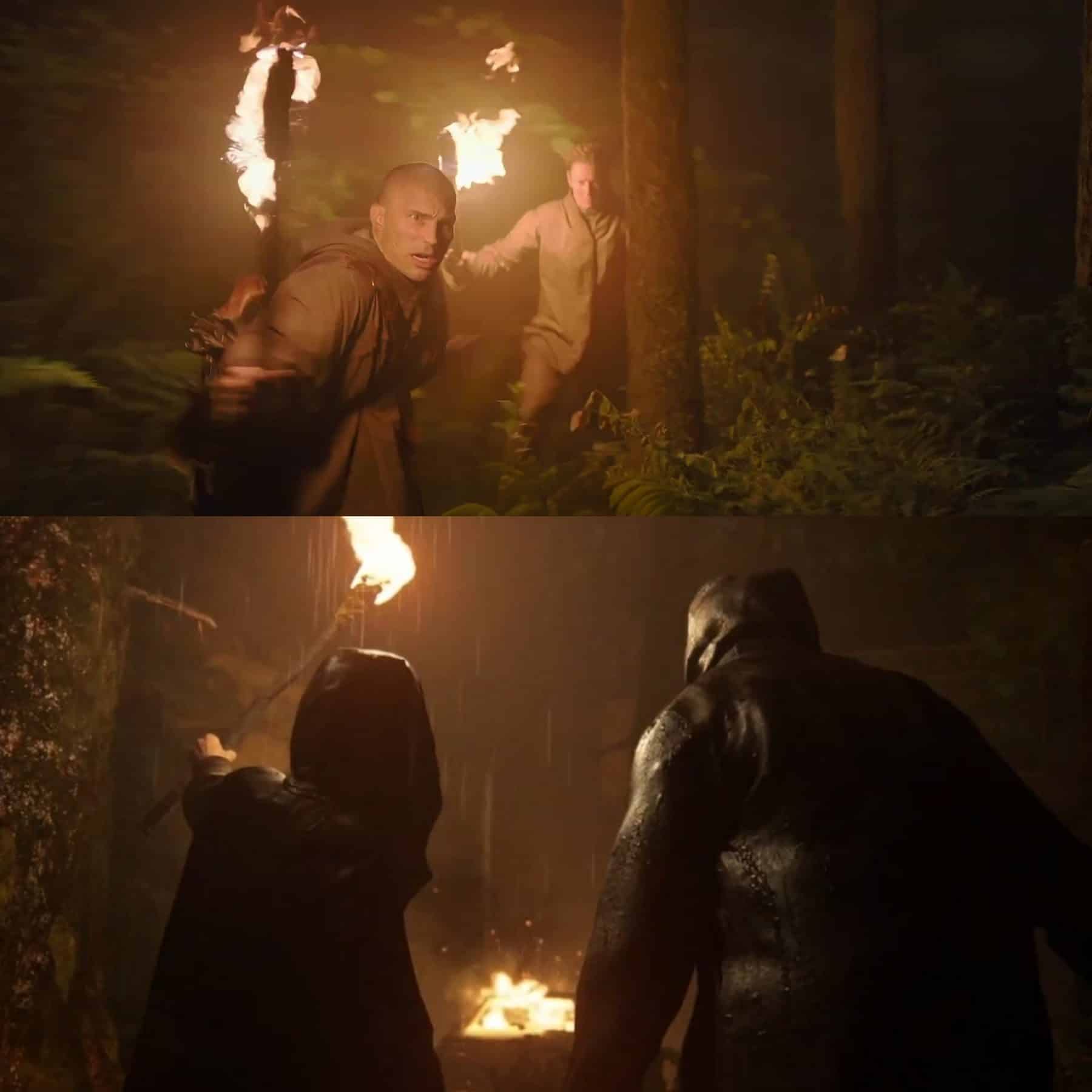 Agora, uma das cenas mais fieis do vídeo ao jogo. A primeira aparição dos Serafitas. A fotografia e a iluminação fazem jus ao game, lembrando muito um dos trailers de The Last of Us Part II e os eventos da floresta do jogo.