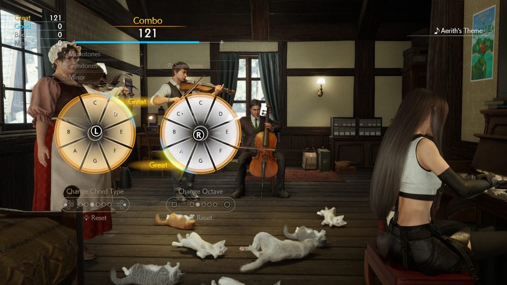 Além dos pretendentes já aguardados por quem jogou o Final Fantasy VII original, a equipe preparou alguns novos candidatos, além de uma sequência de encontro expandida dentro do Gold Saucer, então há muito pelo que esperar. E se você aumentar o nível do grupo, que mostra o vínculo entre toda a equipe, os personagens poderão alcançar seu verdadeiro potencial em combate. Há muitas ações de sinergia que podem ser executadas por personagens com uma relação próxima, para que você possa derrotar os adversários com seus personagens e golpes especiais favoritos.