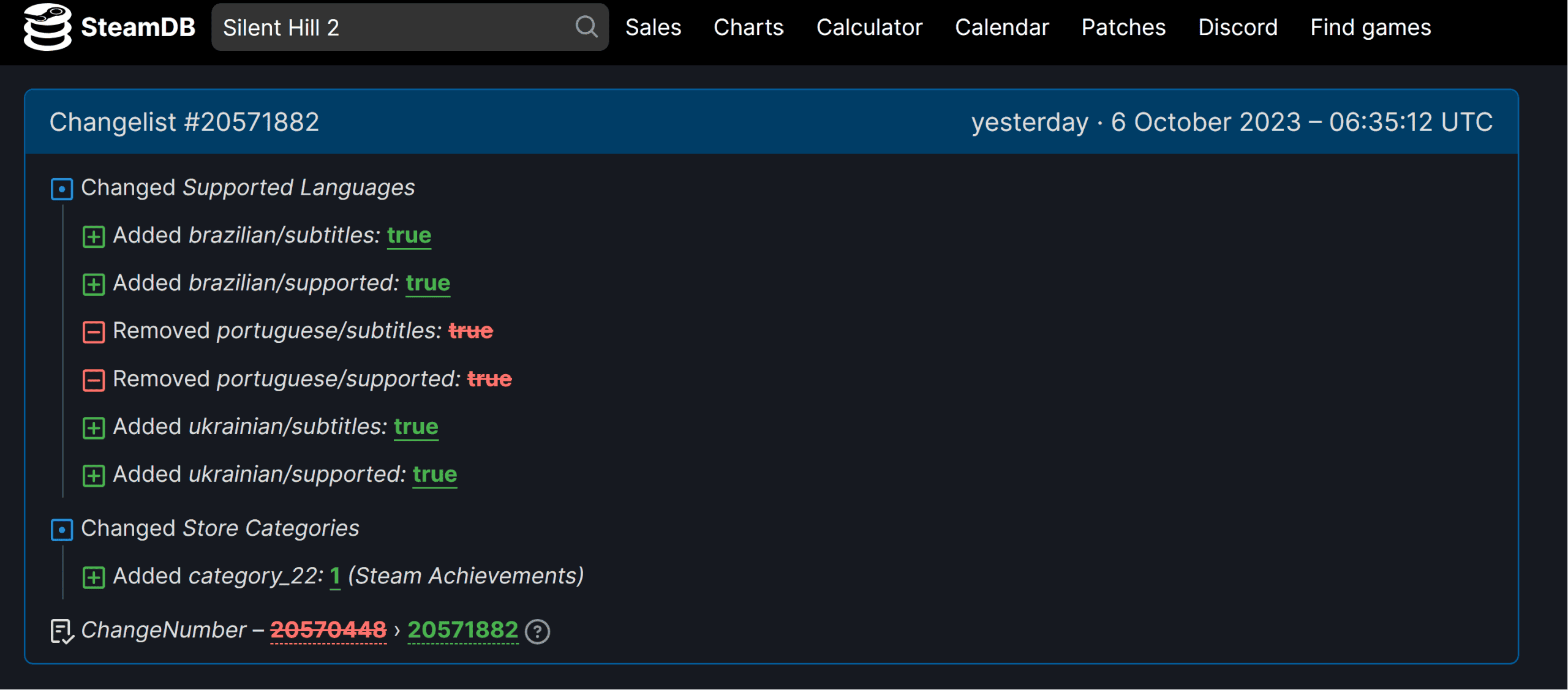 Com lançamento ainda indefinido, o remake de Silent Hill 2 da Bloober Team para PlayStation 5 e PC, terá legendas em português do Brasil, português de Portugal e Ucraniano, confirma atualização feita no banco de dados do jogo na Steam. Mudança foi registrada no Steam Database.