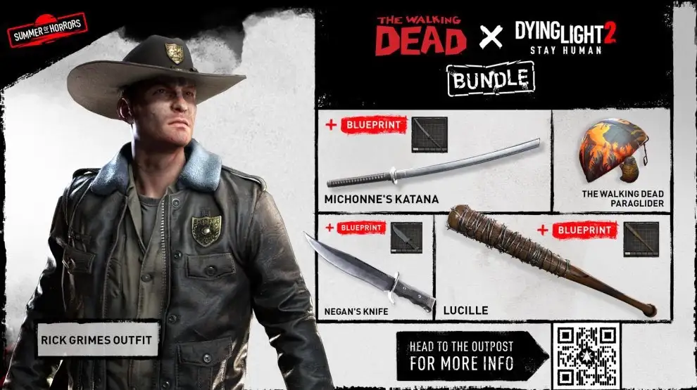 Através do canal do jogo no Discord, usuários conseguiram ver imagem que revelou que o crossover trará a roupa de Rick Grimes, um dos personagens protagonistas da série de TV da AMC, a katana de Michonne, a faca e a lucille de Negan e outros itens cosméticos de The Walking Dead.
