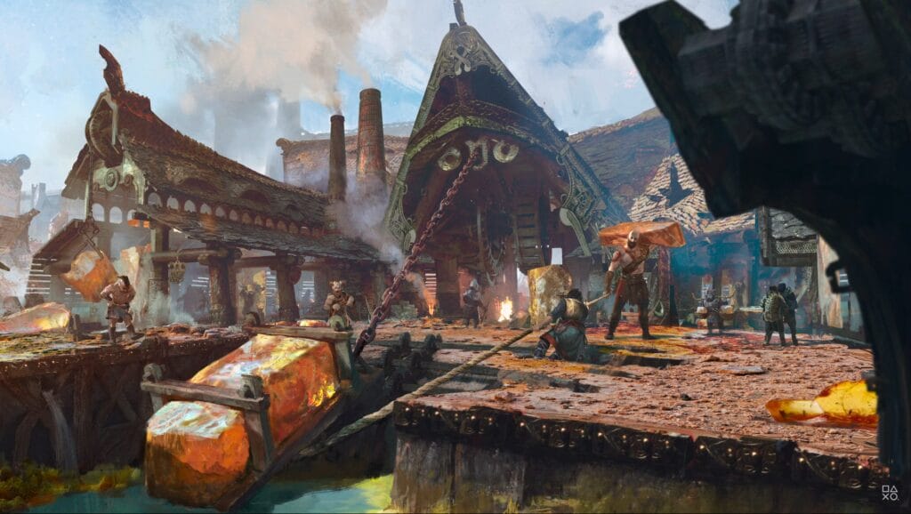 Em God of War de 2018, a gente viu Brok e Sindri, e essa foi a ponta do iceberg dos irmãos Huldra. Em God of War Ragnarok, a gente pode visitar Svartalhein, a terra natal deles. E uma parte importante disso é que a gente quer expandir o elenco de personagens. A gente conheceu só um pouco do que foi representado, e é algo que a gente ainda não tinha visto.