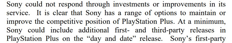 A Sony não conseguiu responder por meio de investimentos ou melhorias em seu serviço. É claro que a Sony tem uma gama de opções para manter ou melhorar a posição competitiva do PlayStation Plus. No mínimo, A Sony poderia incluir lançamentos originais e de terceiros adicionais na PlayStation Plus no lançamento. A inclusão de tais títulos seria benéfica para jogadores.