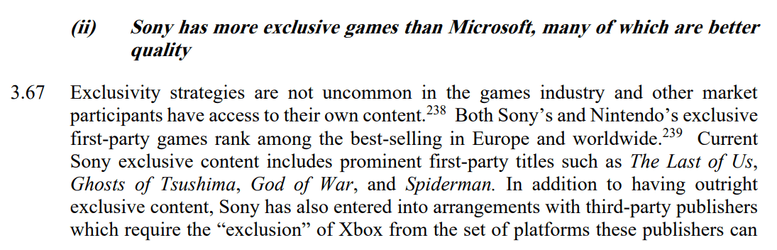 Em um documento oficial, a dona do Xbox reconhece que a concorrente Sony, tem mais exclusivos e melhores. A Microsoft também fala do poder de mercado que a Sony tem com seus exclusivos, que estão entre os mais vendidos no mundo.