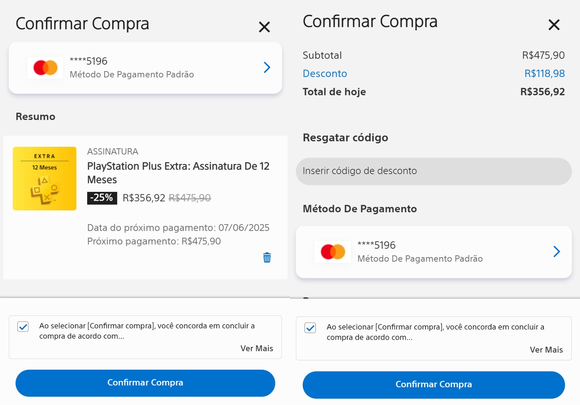 Até o momento desta publicação, a assinatura de serviços como o PlayStation Plus não estão disponíveis para parcelamento. (Teste realizado com ou sem o desconto vigente do Days of Play)