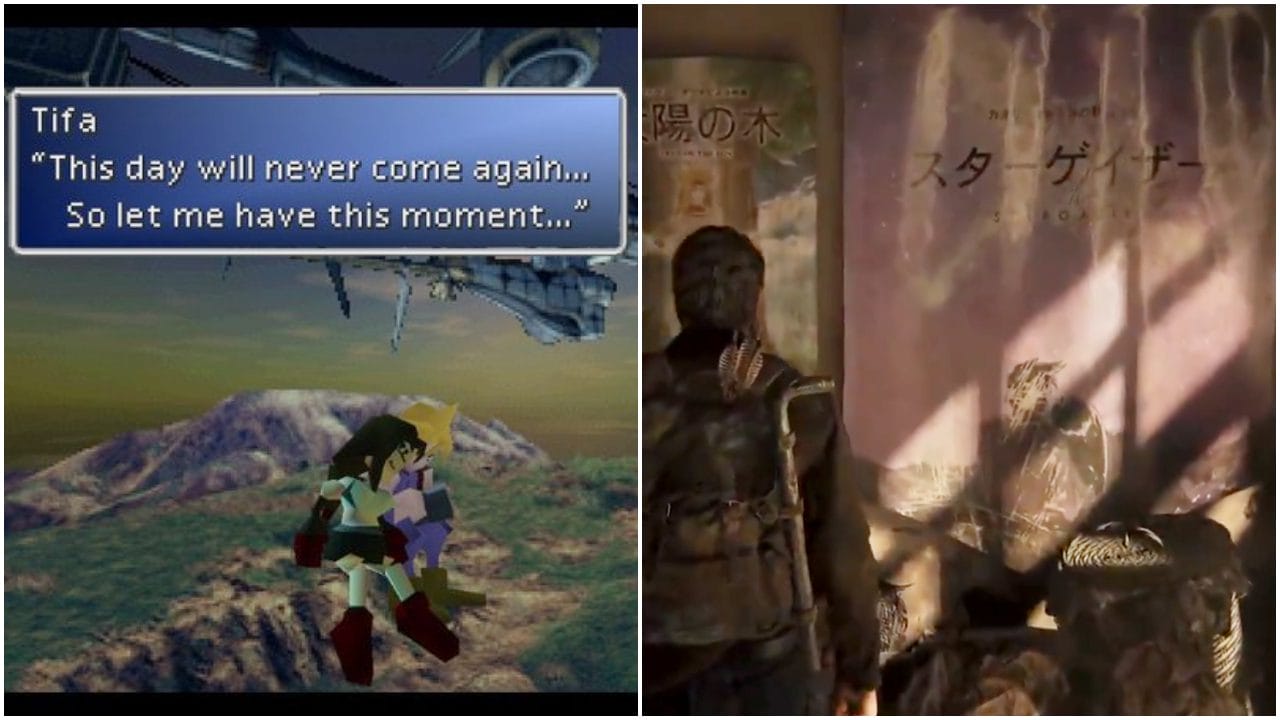 Um easter egg de uma cena que antecede o final do game foi encontrado em outro remake. The Last of Us Part I para PlayStation 5. Pôster falso com nome “Stargazer” encontrado por Joel recria abraço de Tifa e Cloud.