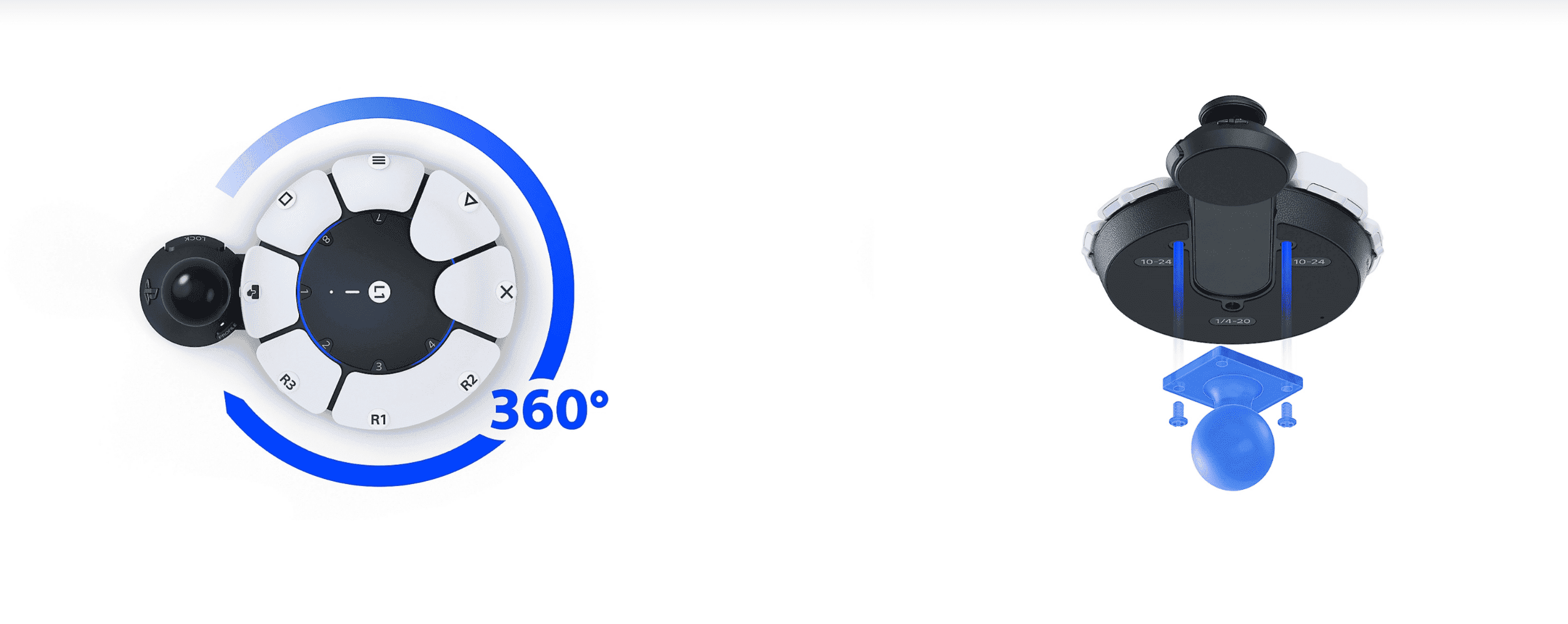 O controle foi projetado para um acesso fácil. Pode ser preso em qualquer angulação, superfícies planas, bandejas de cadeira de rodas, ou usando o parafuso AMPS. Os usuários podem encontrar a posição mais confortável para jogar, independemente do seu dispositivo ou equipamento de acessibilidade. O parafuso AMPS garante que o controle seja seguro e confiável, oferecendo uma solução confortável, segura e acessível para todos.