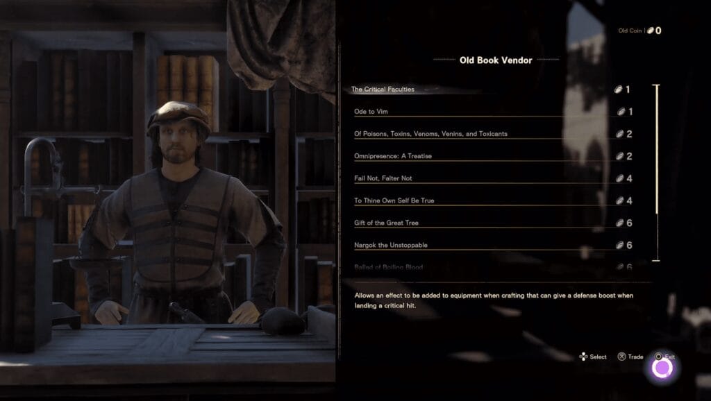 Moedas Antigas podem estar em baús trancados ou escondidas nos cantos de paisagens. O jogador pode depois trocá-las por itens valiosos para utilidades como aprimorar habilidades e mais. Na cidade chamada Cipal, existem algumas pessoas que pedem itens especiais, no qual podemos entregar em troca de recompensas.