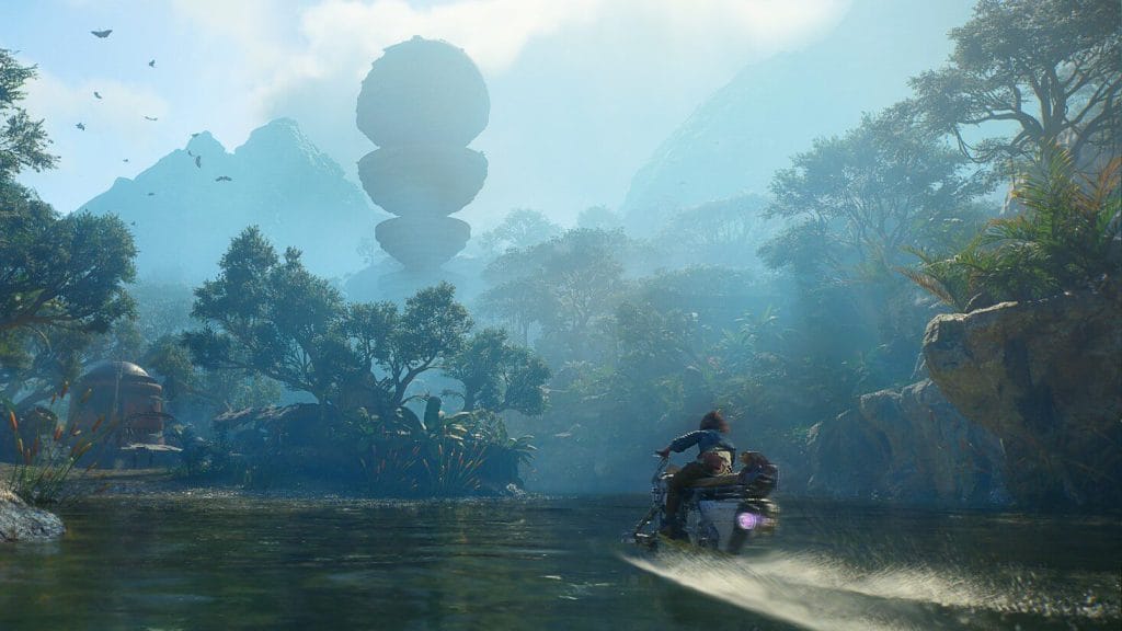 O próprio mundo aberto do jogo é estruturalmente muito diferente de um mapa tradicional, permitindo aos jogadores explorar cinco planetas diferentes que compõem a Orla Exterior. Embora a maioria desses planetas possa ser atravessada em cerca de cinco minutos em um speeder, Gerighty mantém que “uma vez que você está comprometido, é uma quantidade considerável e você sempre será distraído.” Para mais detalhes sobre a escala do jogo e as exigências técnicas associadas, confira nossa entrevista com os diretores de Star Wars Outlaws sobre os desafios técnicos de seu mundo aberto sem costuras.