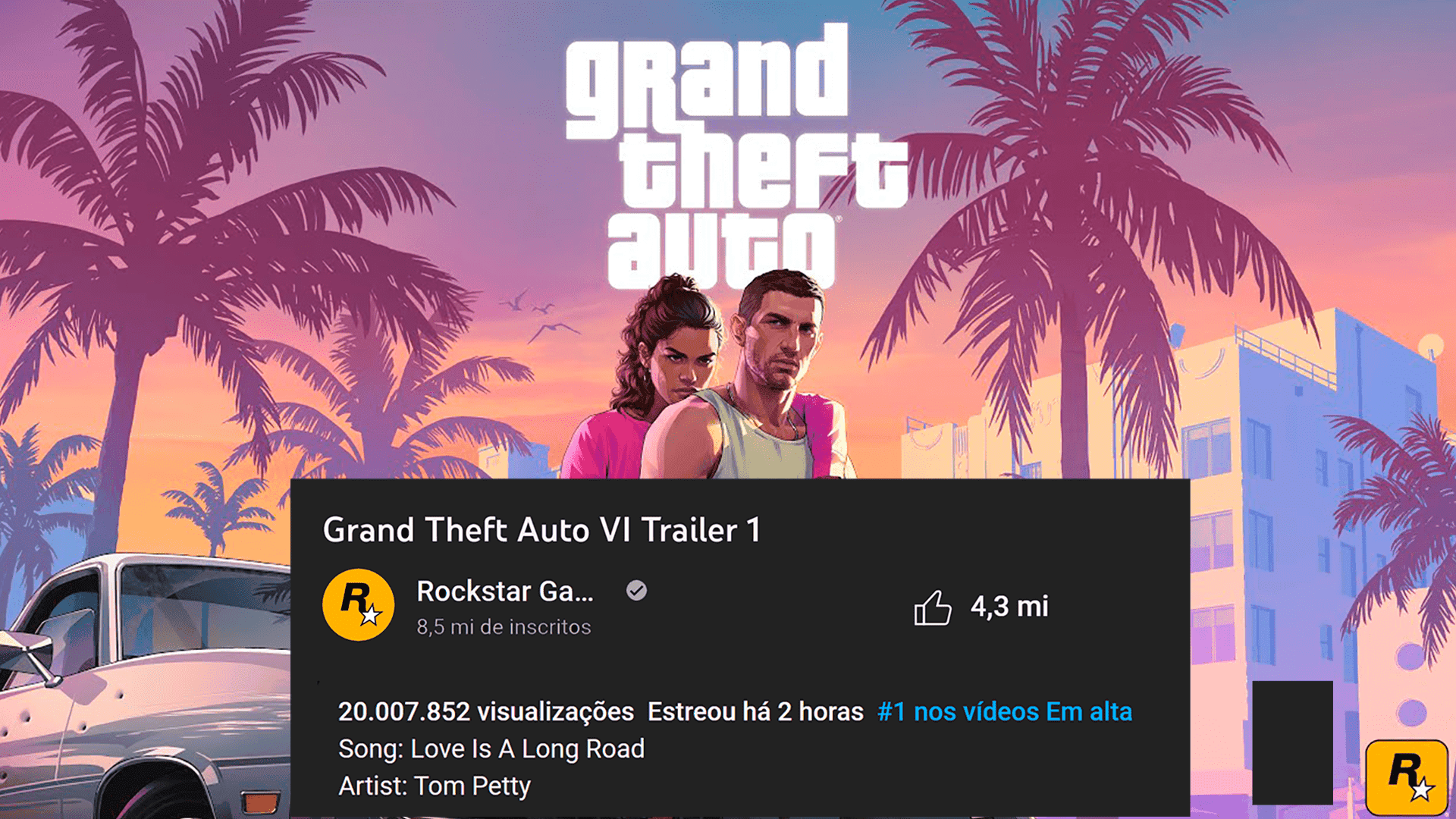 Com mais visualizações que o trailer de revelação de seu antecessor Grand Theft Auto V, revelado há 12 anos, o vídeo que nos fornece uma primeira olhada em GTA VI, acaba de ultrapassar também 100 milhões de reproduções no Youtube. Superou em horas o que jogos anteriores da Rockstar Games levaram anos para atingir.